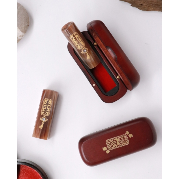 贈送頂級山毛櫸實木外出印章盒,外部採不掉漆燙金設計,內部合身海棉,印章放置不搖晃,更保護印章。