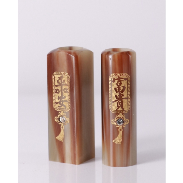 正面鑲『施華洛世奇水鑽』,意謂把錢賺進來、雷雕(平安富貴)讓寶貝一生平平安安、財源廣進,材質採用頂級南非赤牛角印材,材質堅硬、永久保存、每個赤牛角印章都看得到牛角心,有獨特和天然的牛角紋路。