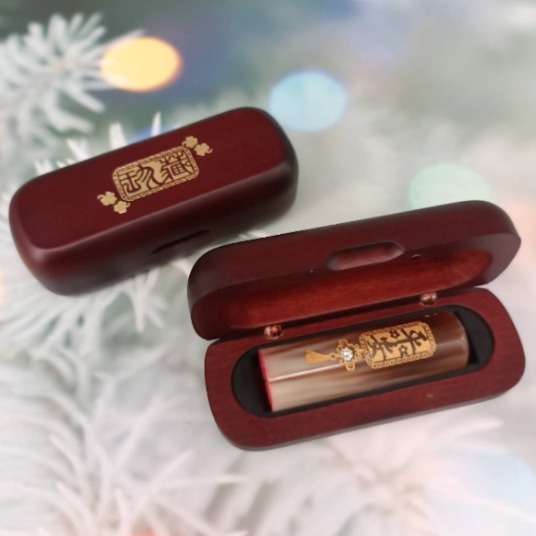 贈送頂級山毛櫸實木外出印章盒,外部採不掉漆燙金設計,內部合身海棉,印章放置不搖晃,更保護印章。