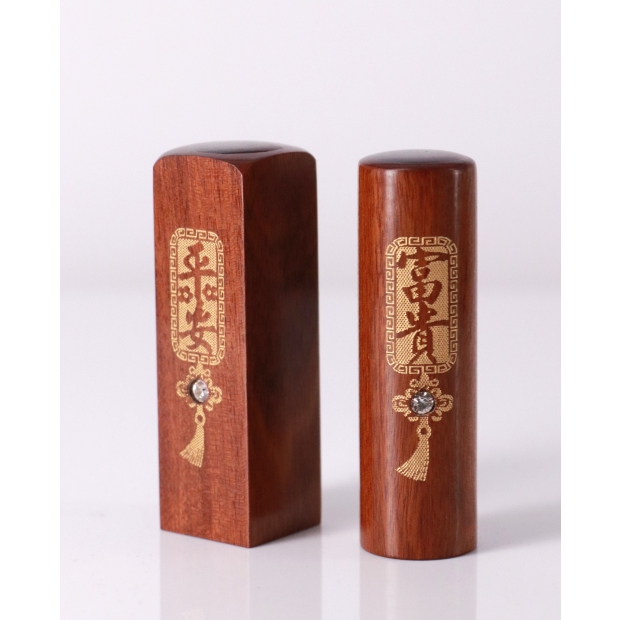 紫檀印章質感紋路相當美麗,放久之後顏色亦會變的更暗紅、更光滑,鑲鑽臍帶&胎毛印鑑,正面鑲鑽很有特色,有把錢財『賺』進來的意味,平安富貴有健康成長之意,深受現代父母的喜愛。