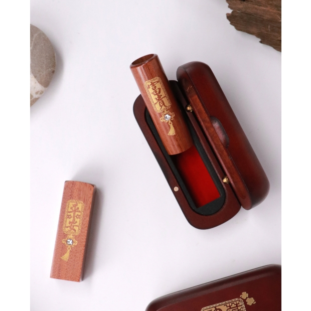 贈送頂級山毛櫸實木外出印章盒,外部採不掉漆燙金設計,內部合身海棉,印章放置不搖晃,更保護印章。