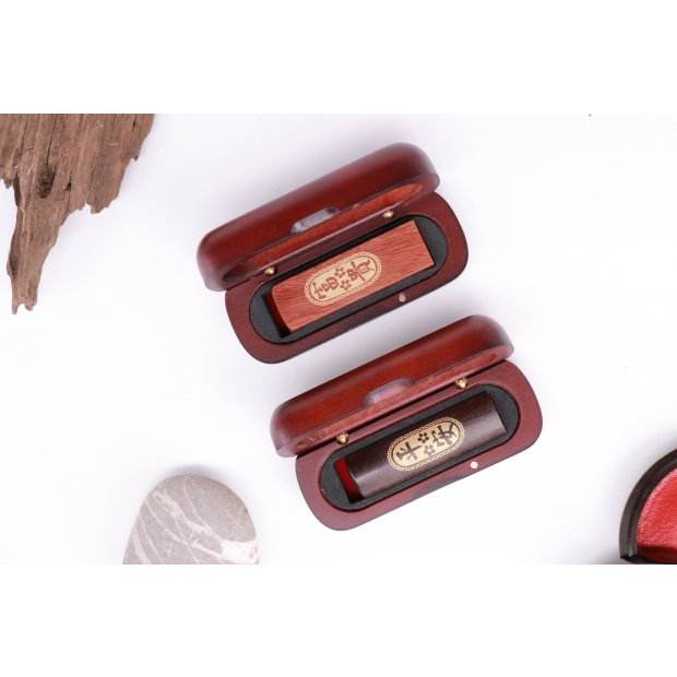贈送頂級山毛櫸實木外出印章盒,外部採不掉漆燙金設計,內部合身海棉,印章放置不搖晃,更保護印章。