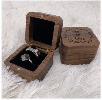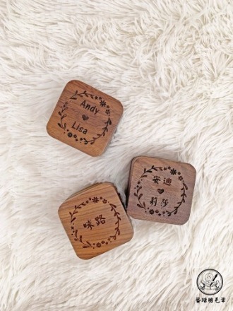 對戒指皆附贈胡桃木收納盒,盒面可依您的需求進行專屬雷射雕刻,刻上名字、日期或祝福語,讓禮物更具獨一無二的紀念價值。