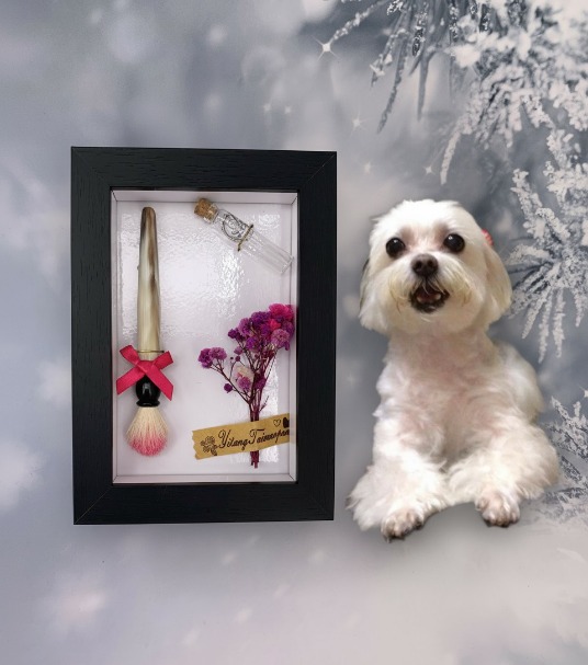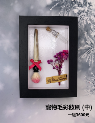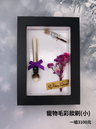 寵物毛彩粧刷|專屬的永恆紀念讓牠的一縷毛髮,化作最溫柔的紀念。每一支彩粧刷都經過梳洗清潔及消毒,結合乾燥花與小毛髮瓶設計,象徵「相伴一生、愛不止息」。可擺放於桌上或展示櫃中,不僅是一份藝術品,更是一段情感的延續。